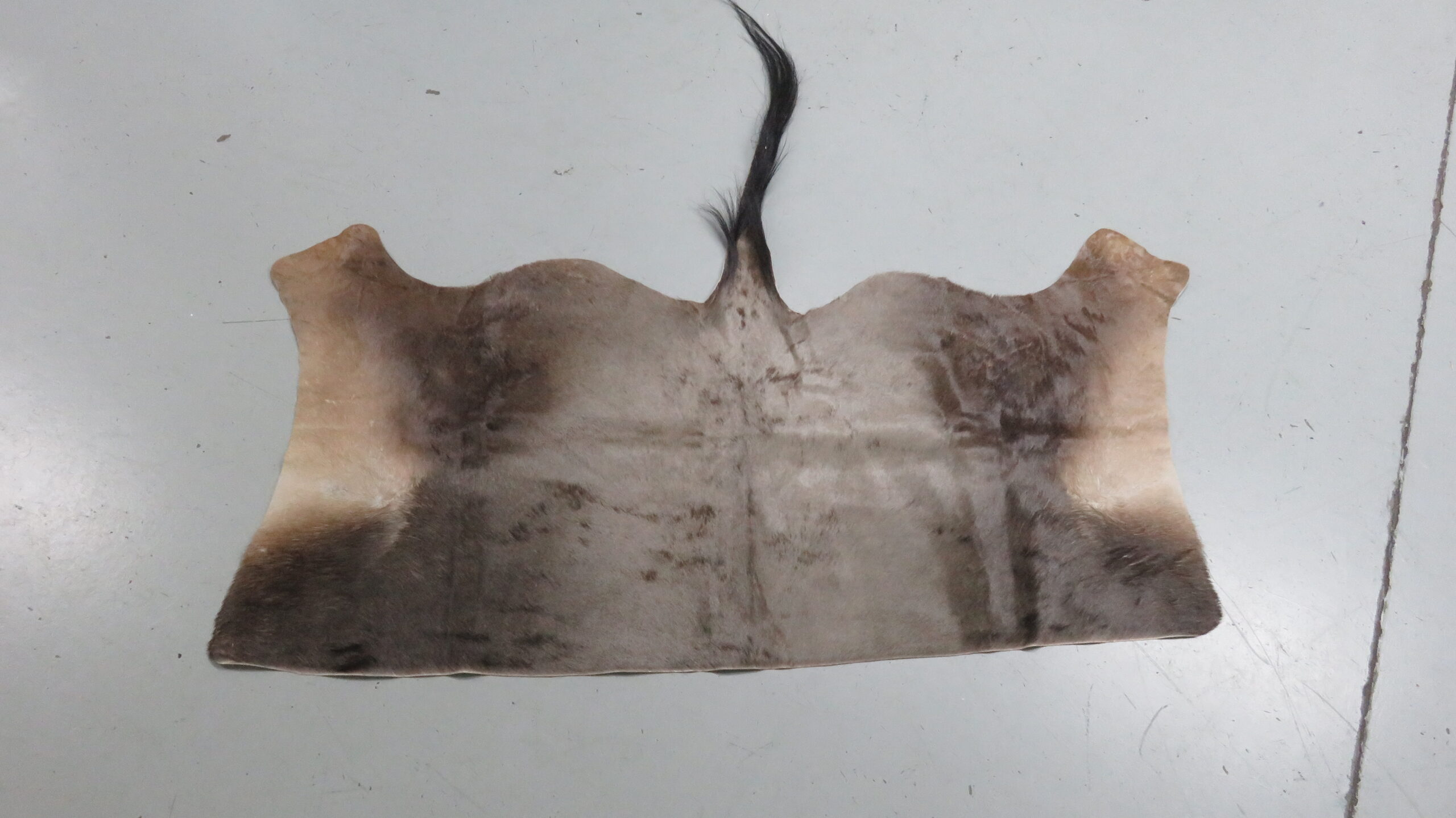 This is a beautiful, soft, pliable back hide of an African Blue Wildebeest. Good pattern and coloration. Excellent quality item for display in the lodge, mancave or office.