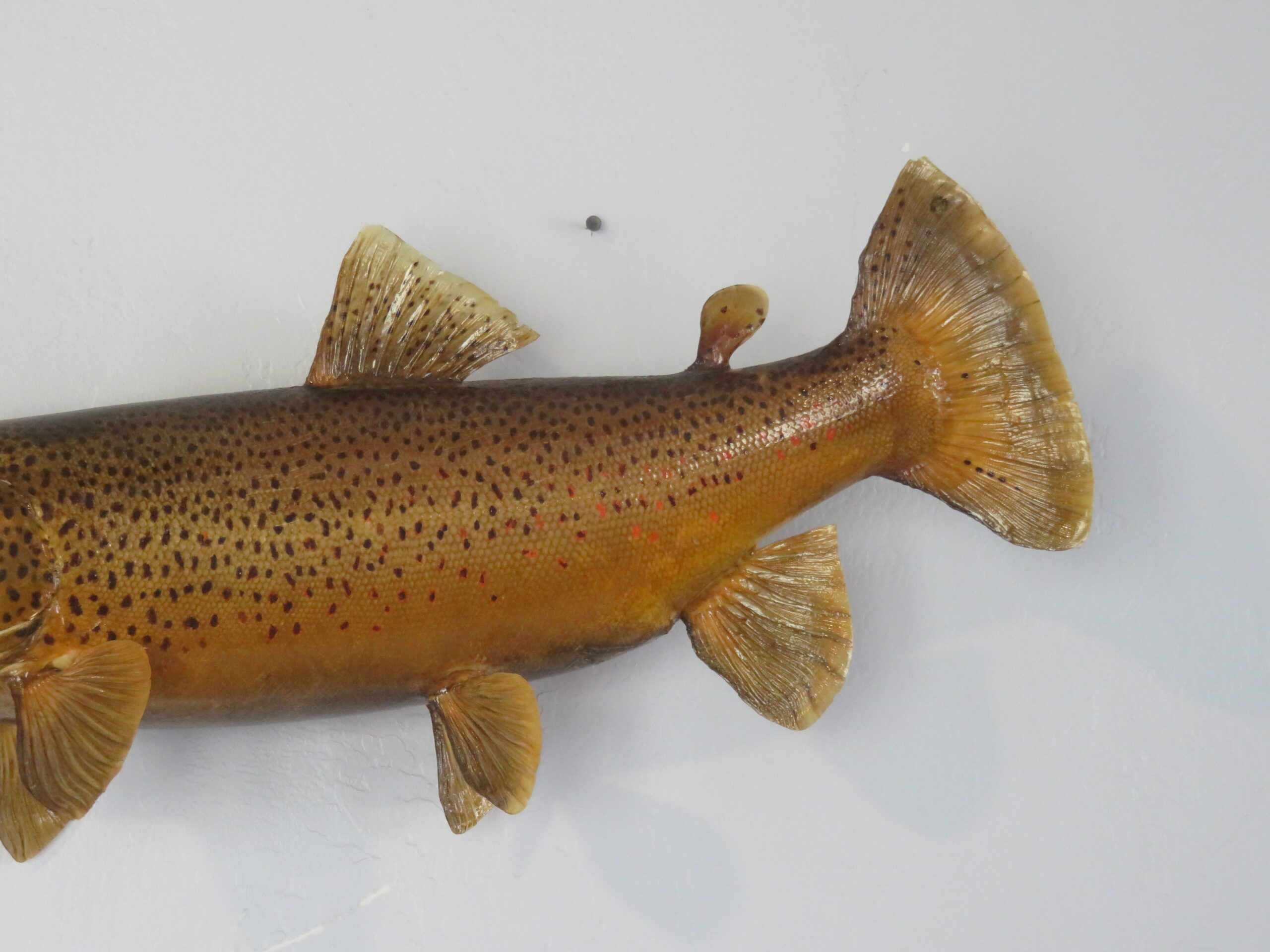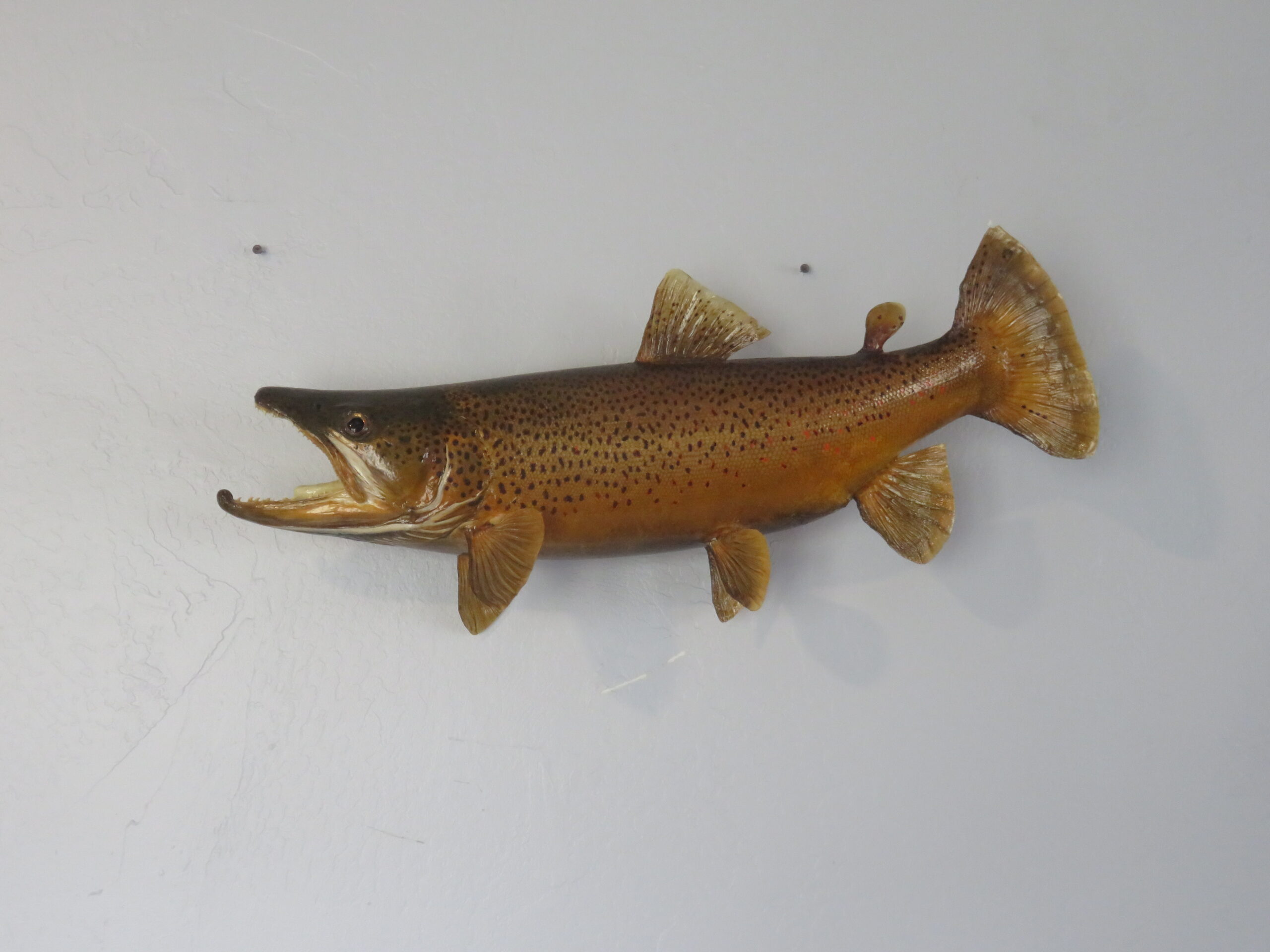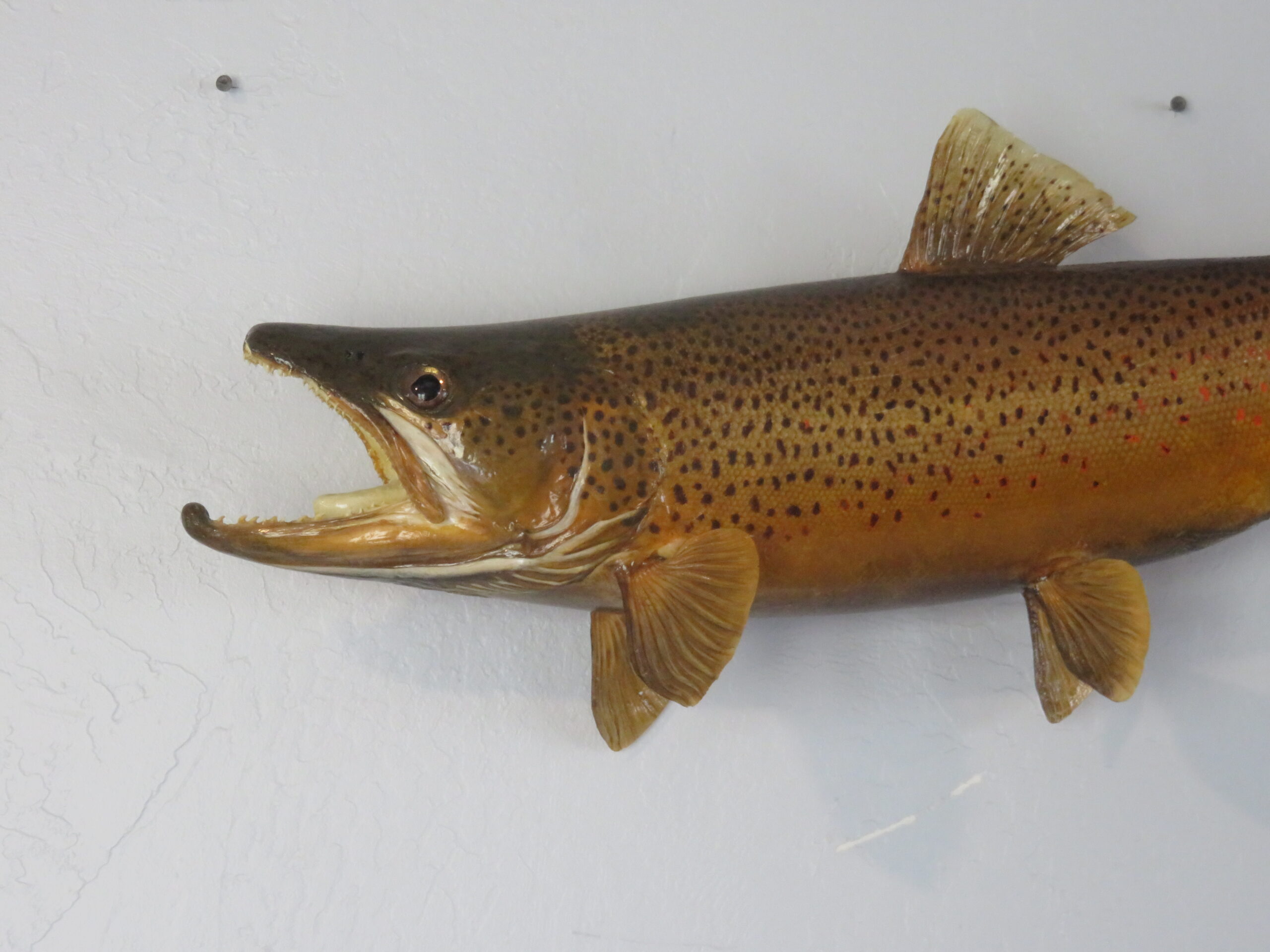 This is a great looking Western Montana Brown Trout. Mounted fish is 24″ long and is a real skin mount. Live weight of fish when caught was 8 pounds. Nice pose with great workmanship earn this taxidermy mount a rating of “Excellent”.