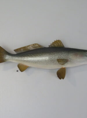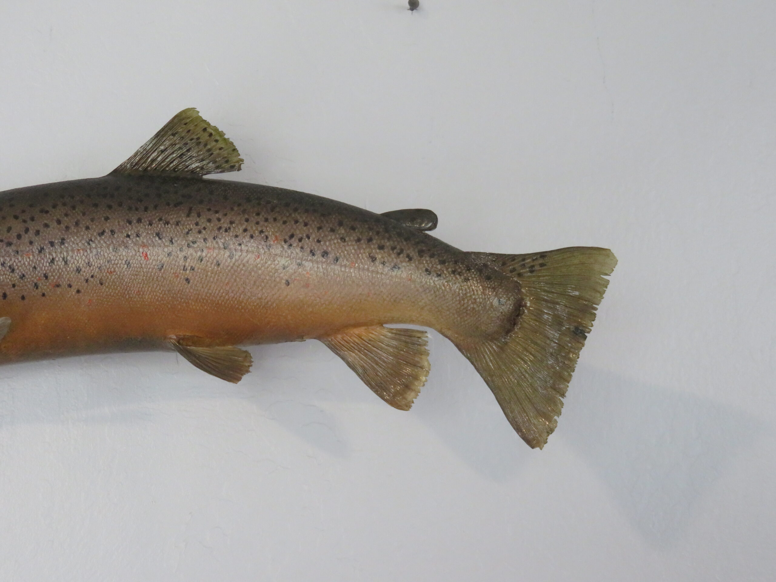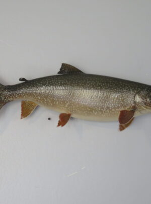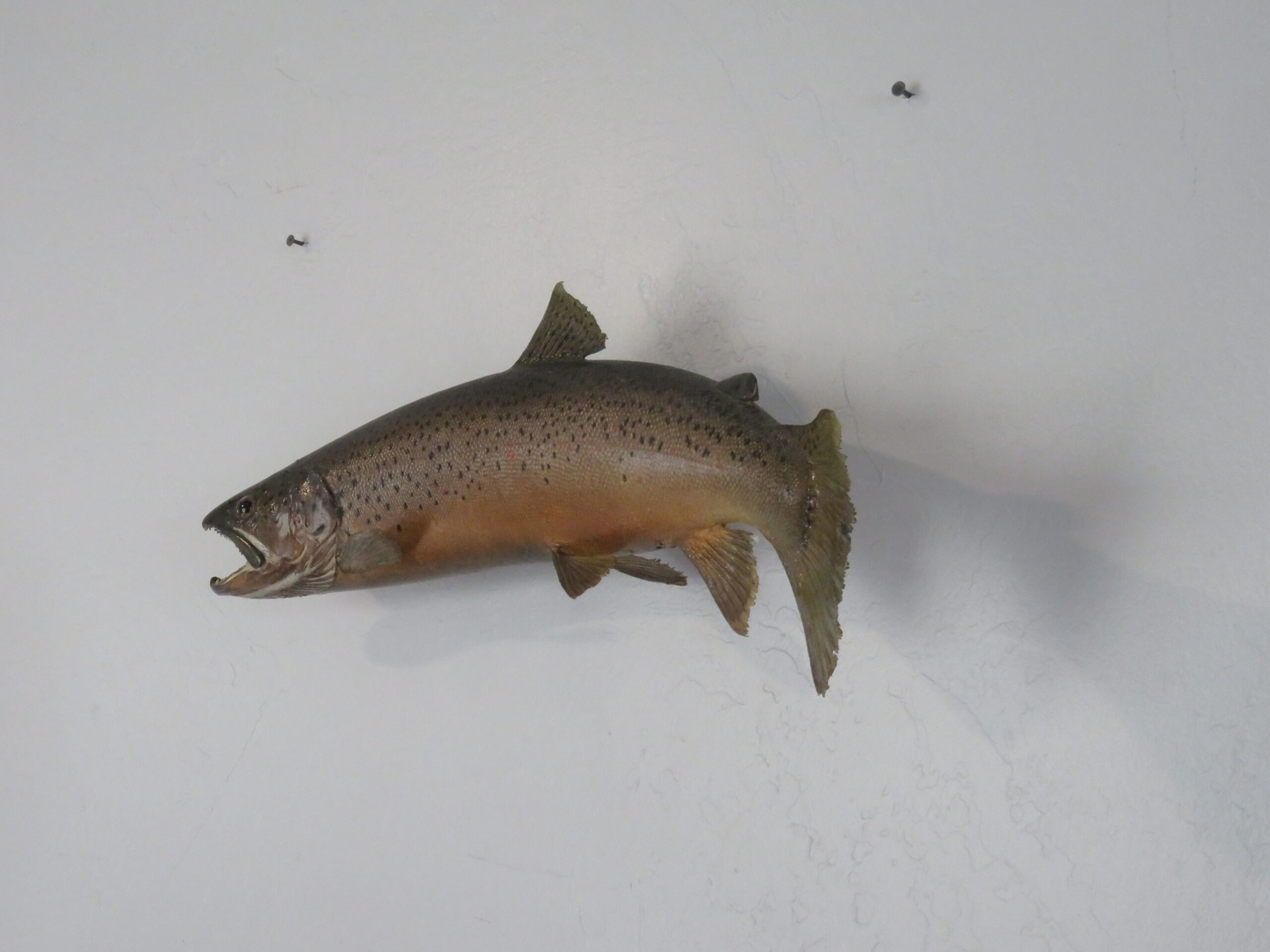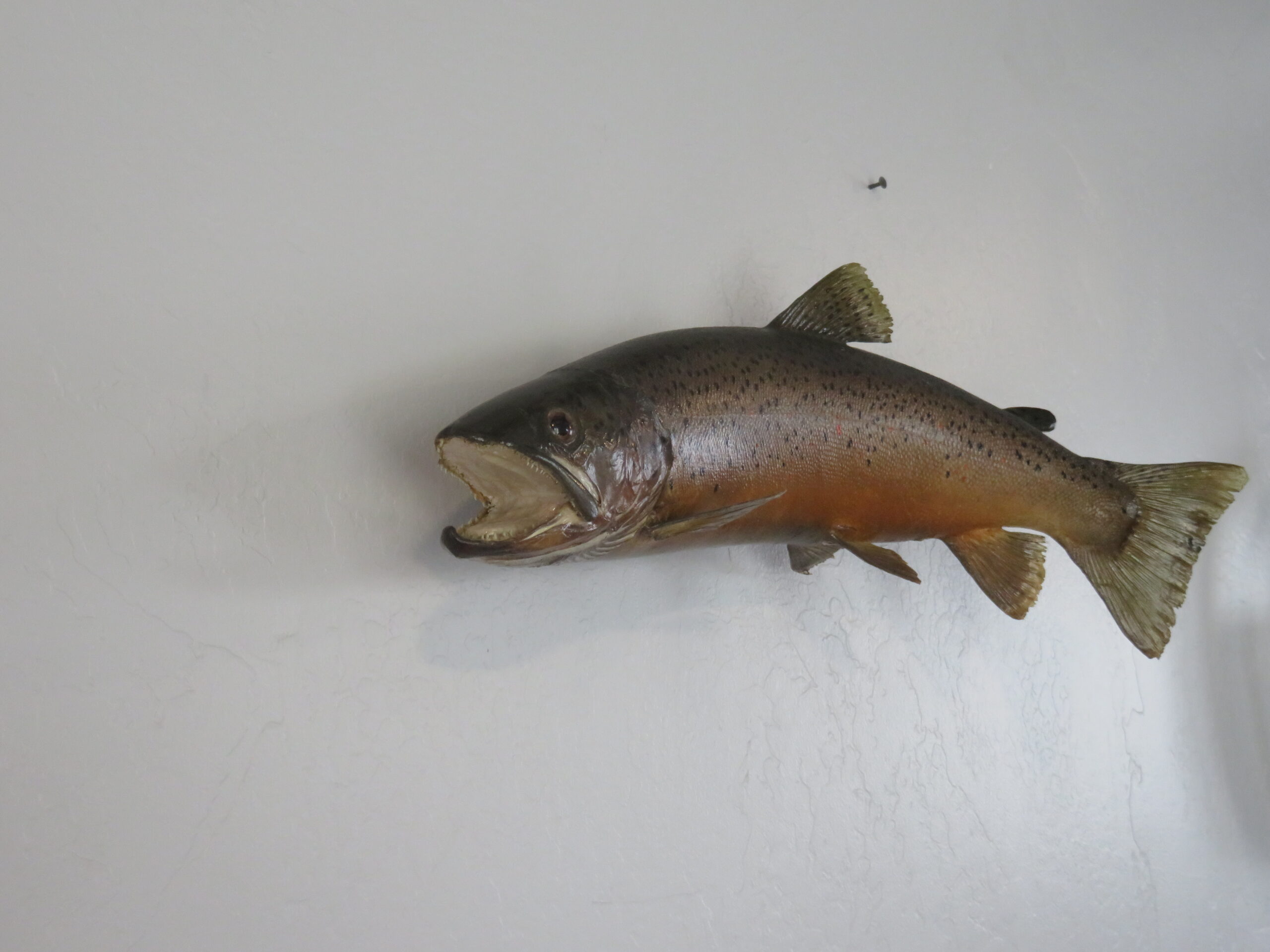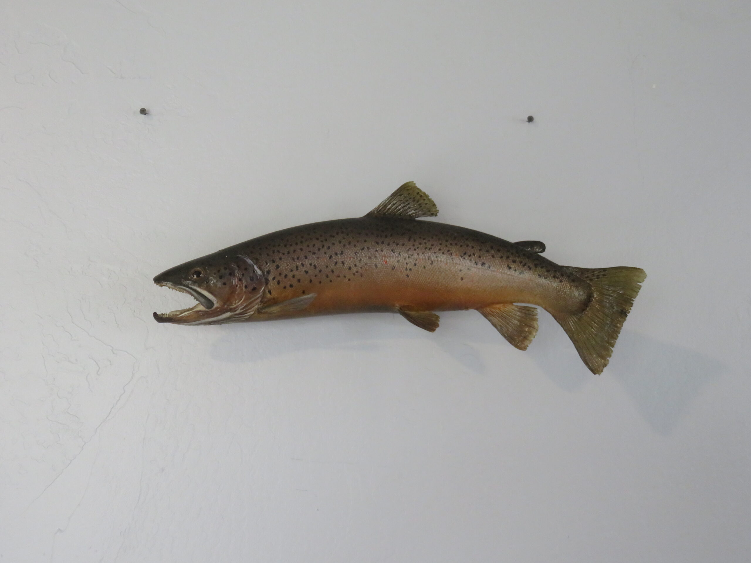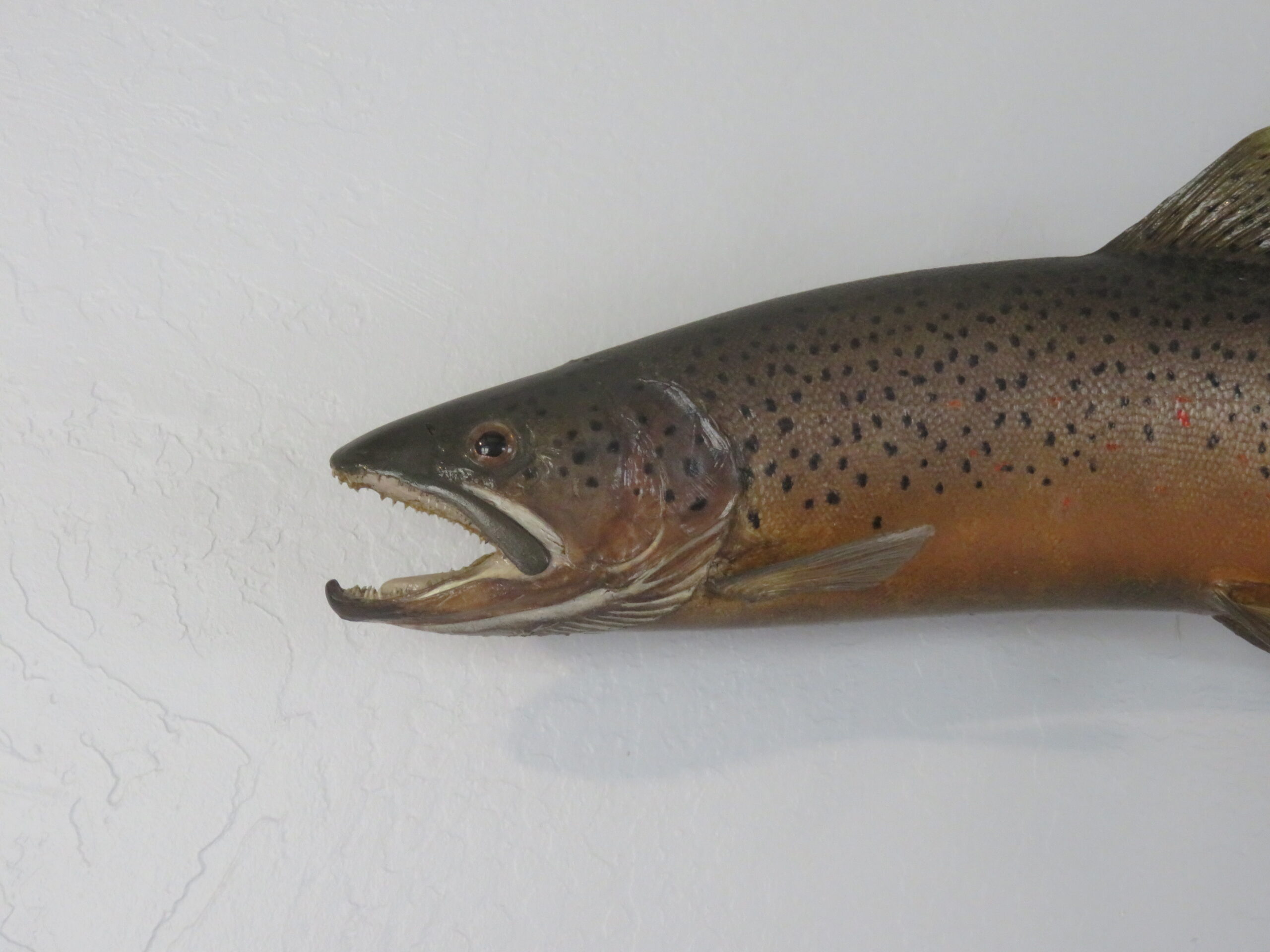 This is a real skin mount of a Brown Trout from Western Montana. Fish measures 18″ in length. “Excellent” quality workmanship by the taxidermist. Fish faces to the left looking along the wall. Mount has a slightly arched body and has a bow away from the wall (see attached photos).