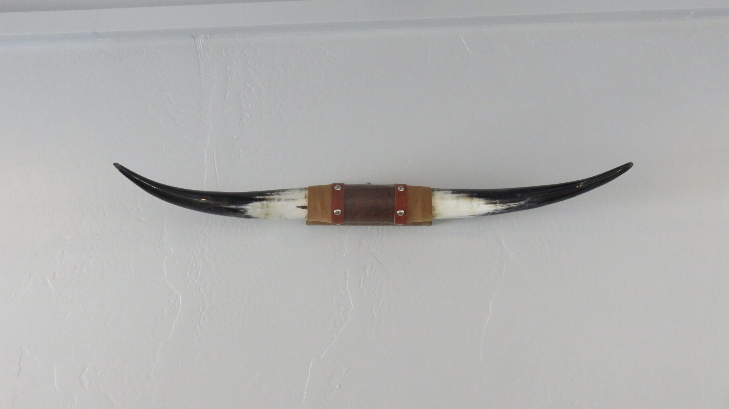 We have just picked up a great group of Texas Longhorns from Ft. Worth, TX and are proud to offer these to our clients. Each set is finished with genuine leather wraps and polished horns on a plaque with a hook for hanging. Great items for display in the lodge, cabin, mancave or office. They come in a variety of sizes and finishes. Some have studs/tacks that accent the leather and others do not. Leather can be black, brown or cowhide with the hair on. So take a moment to look at each variety. The one you see pictures of and purchase, is the one you will receive. These are NOT stock photos.