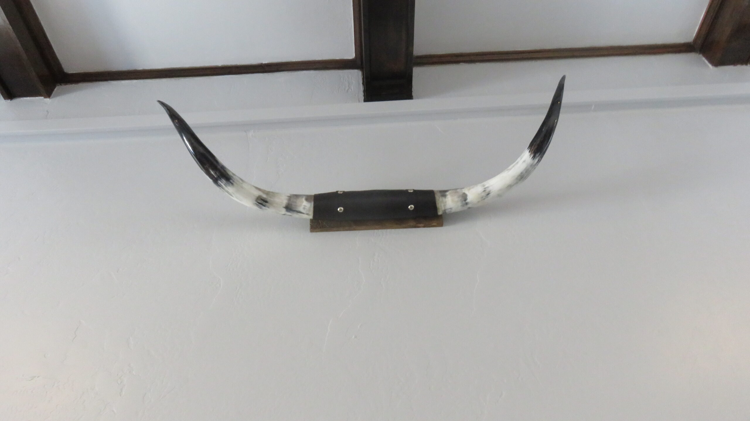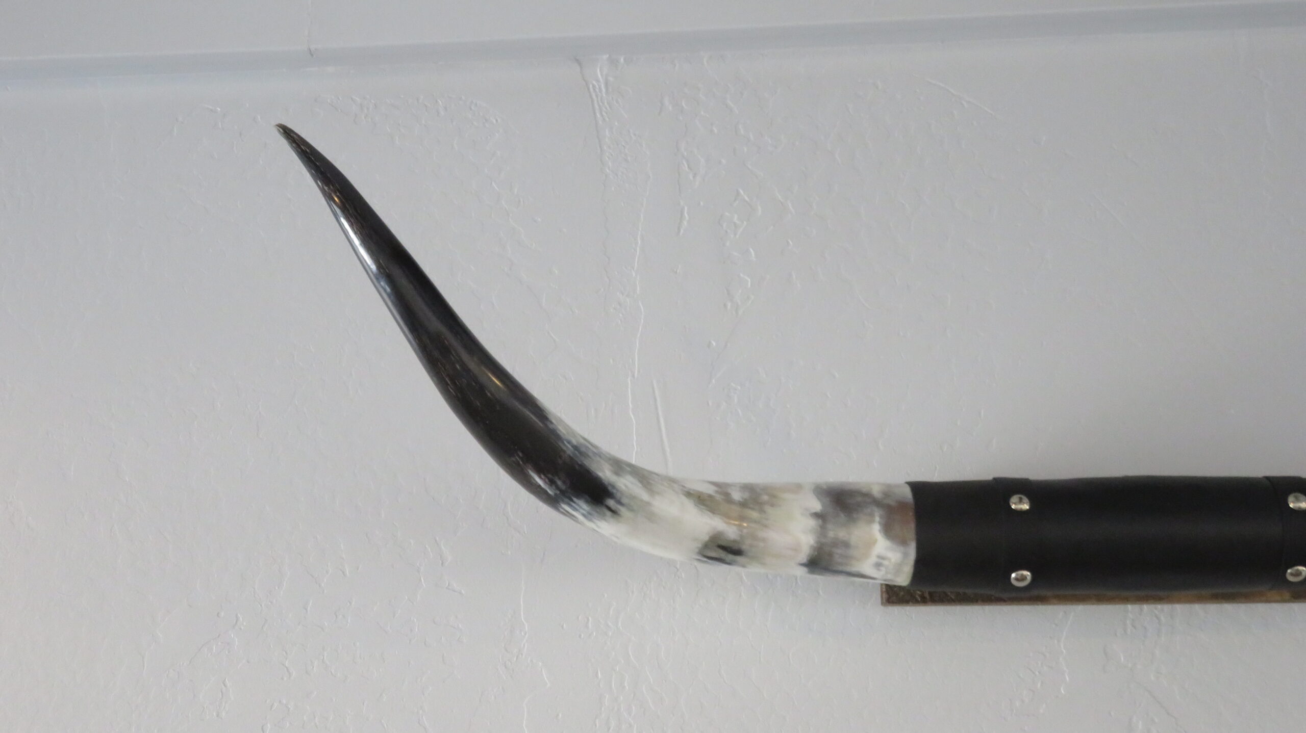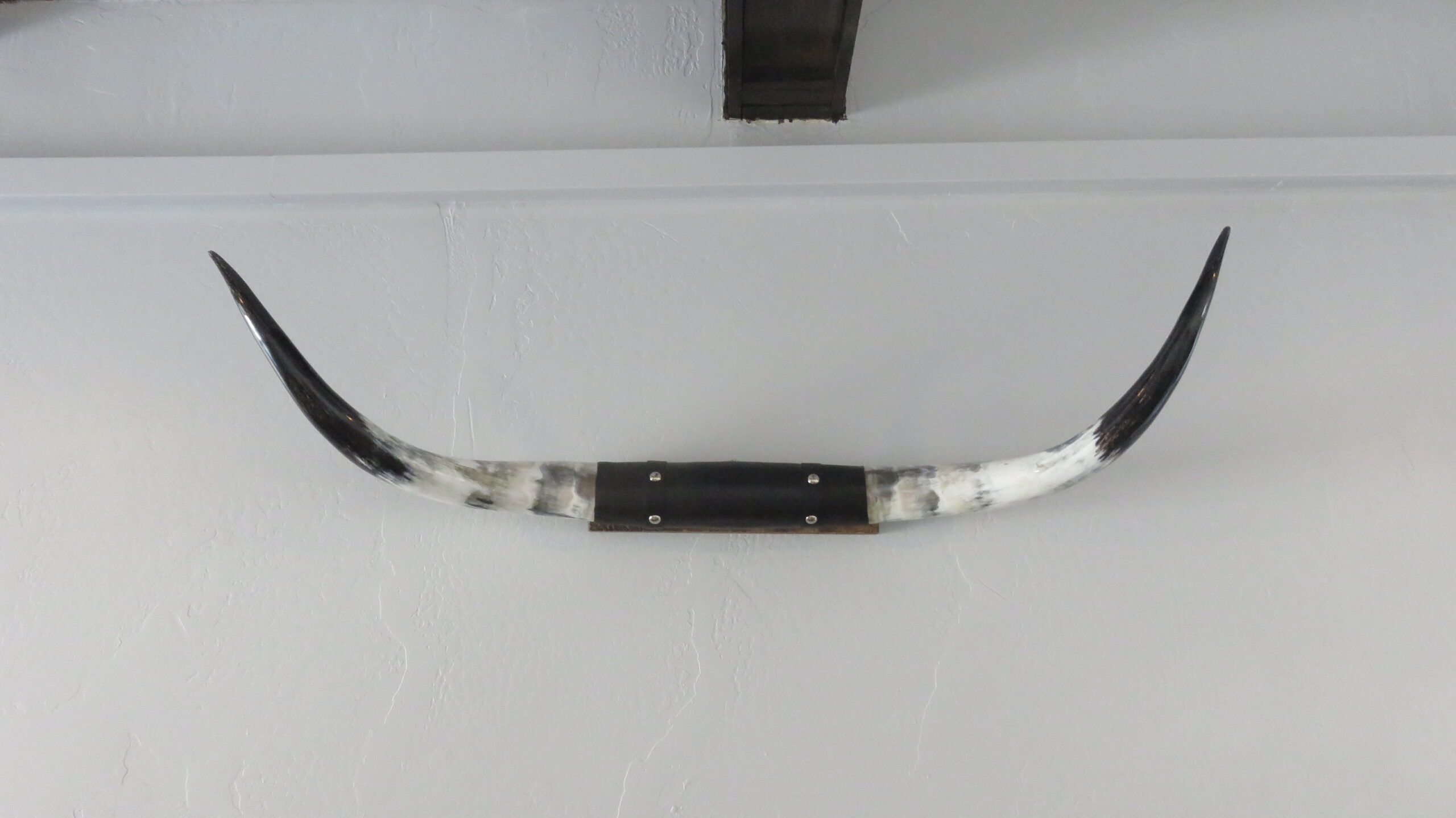 We have just picked up a great group of Texas Longhorns from Ft. Worth, TX and are proud to offer these to our clients. Each set is finished with genuine leather wraps and polished horns on a plaque with a hook for hanging. Great items for display in the lodge, cabin, mancave or office. They come in a variety of sizes and finishes. Some have studs/tacks that accent the leather and others do not. Leather can be black, brown or cowhide with the hair on. So take a moment to look at each variety. The one you see pictures of and purchase, is the one you will receive. These are NOT stock photos.