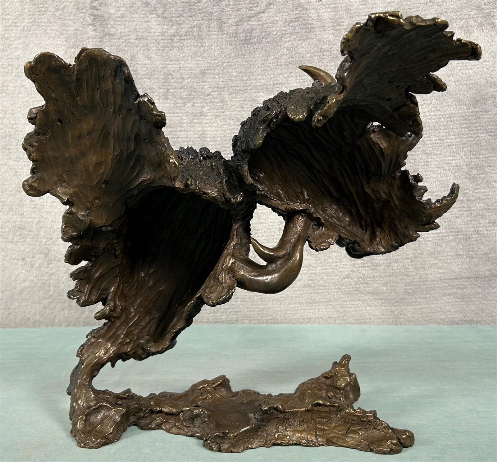 Mark is known for his life like art representations of wildlife, as well as kids, sports and birds. “Mark Hopkins is considered one of the premier bronze sculptors in the United States today. From tabletop sculpture to monuments, his work is displayed in homes, offices, and public settings around the world.” (Artifacts Gallery)