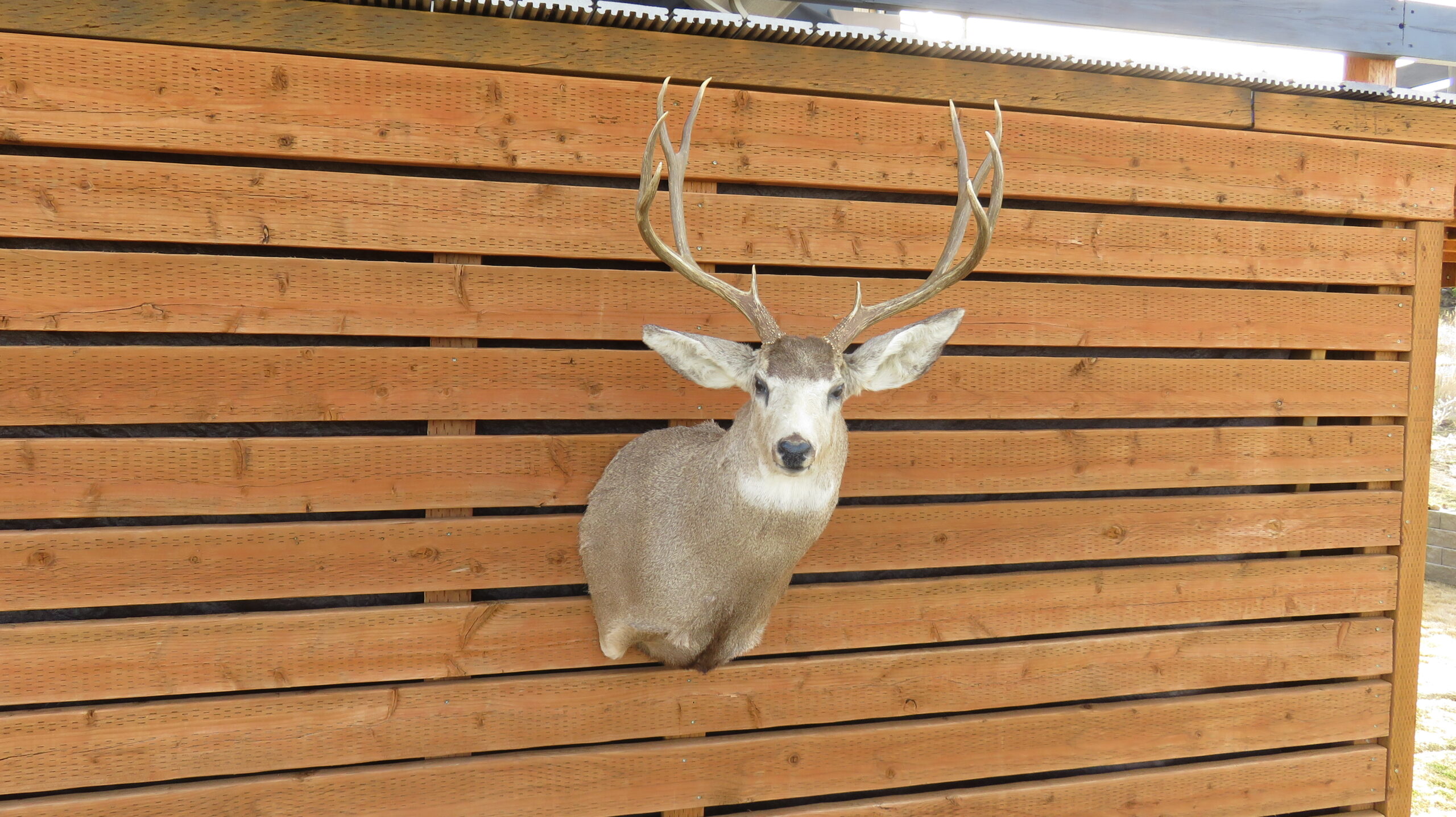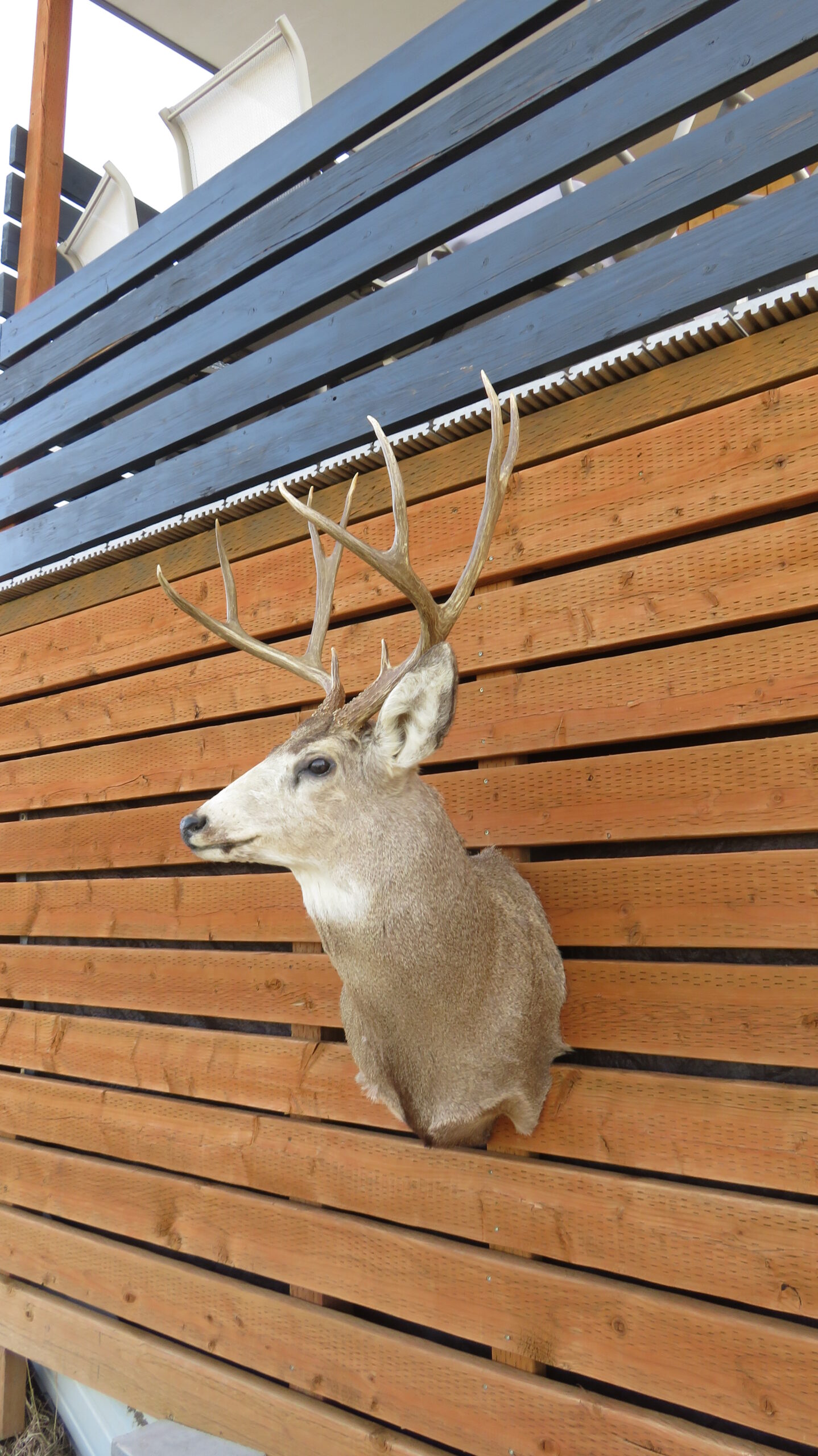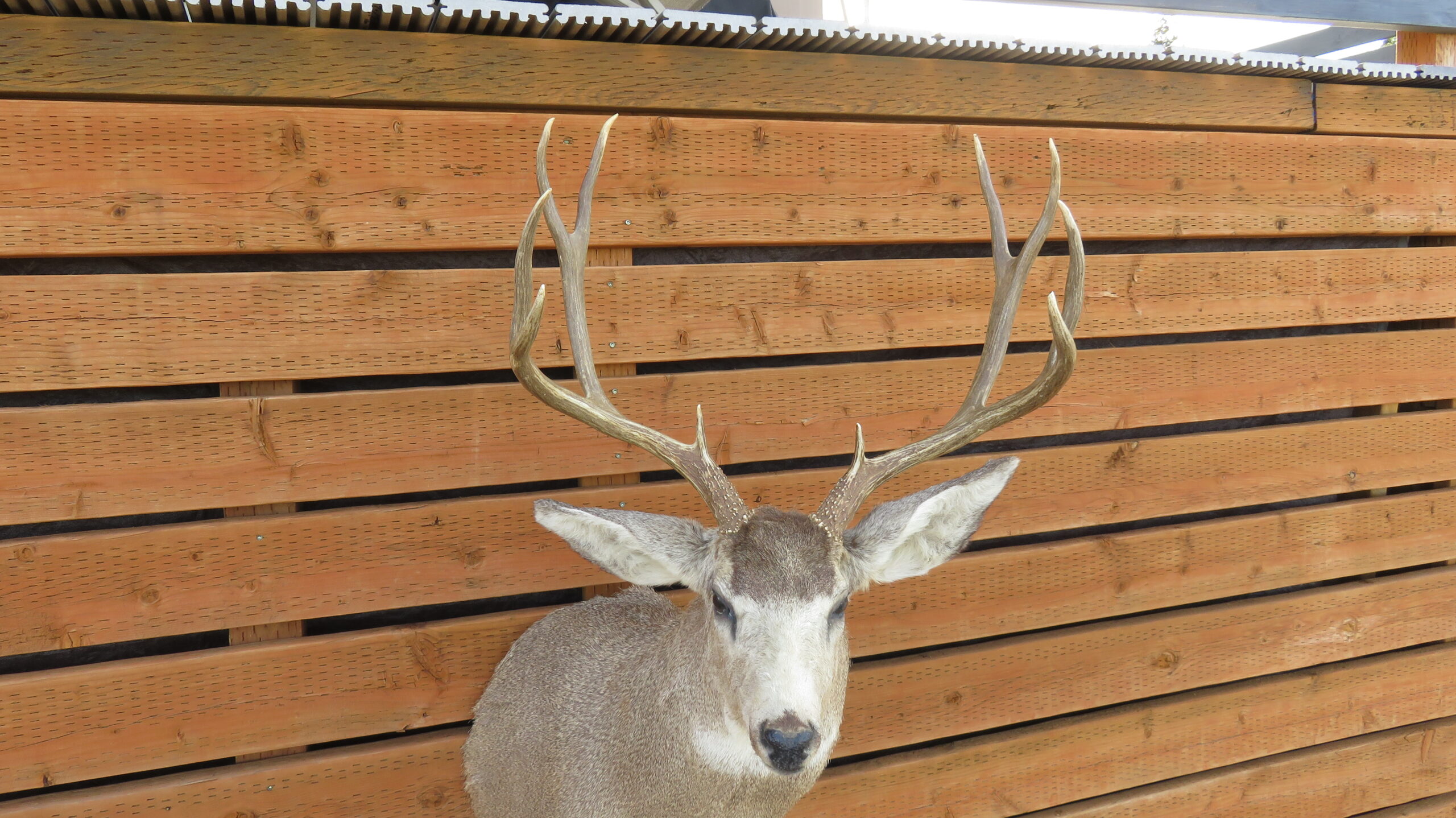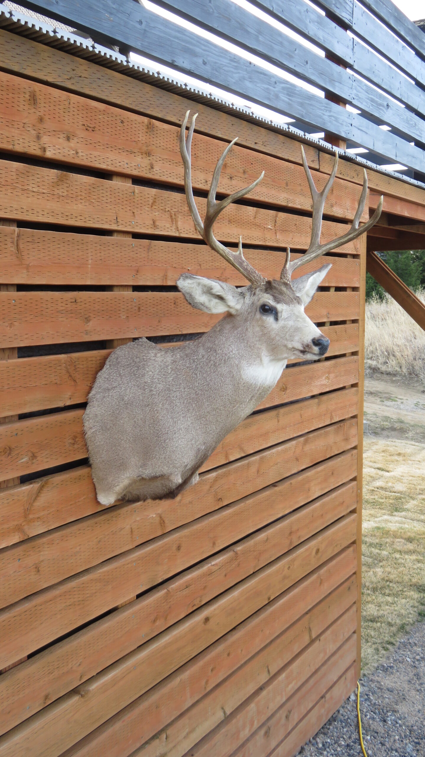 This is a great looking Western Montana Mule deer mount. Nice turned head pose, looking forward into the room to the right (buck’s right). The rack is a 5 x 5 with good width (20 1/2″ inside spread) and solid length to tines. Not a heavy rack, but good length and width make this an attractive item for the lodge, cabin, mancave or office.