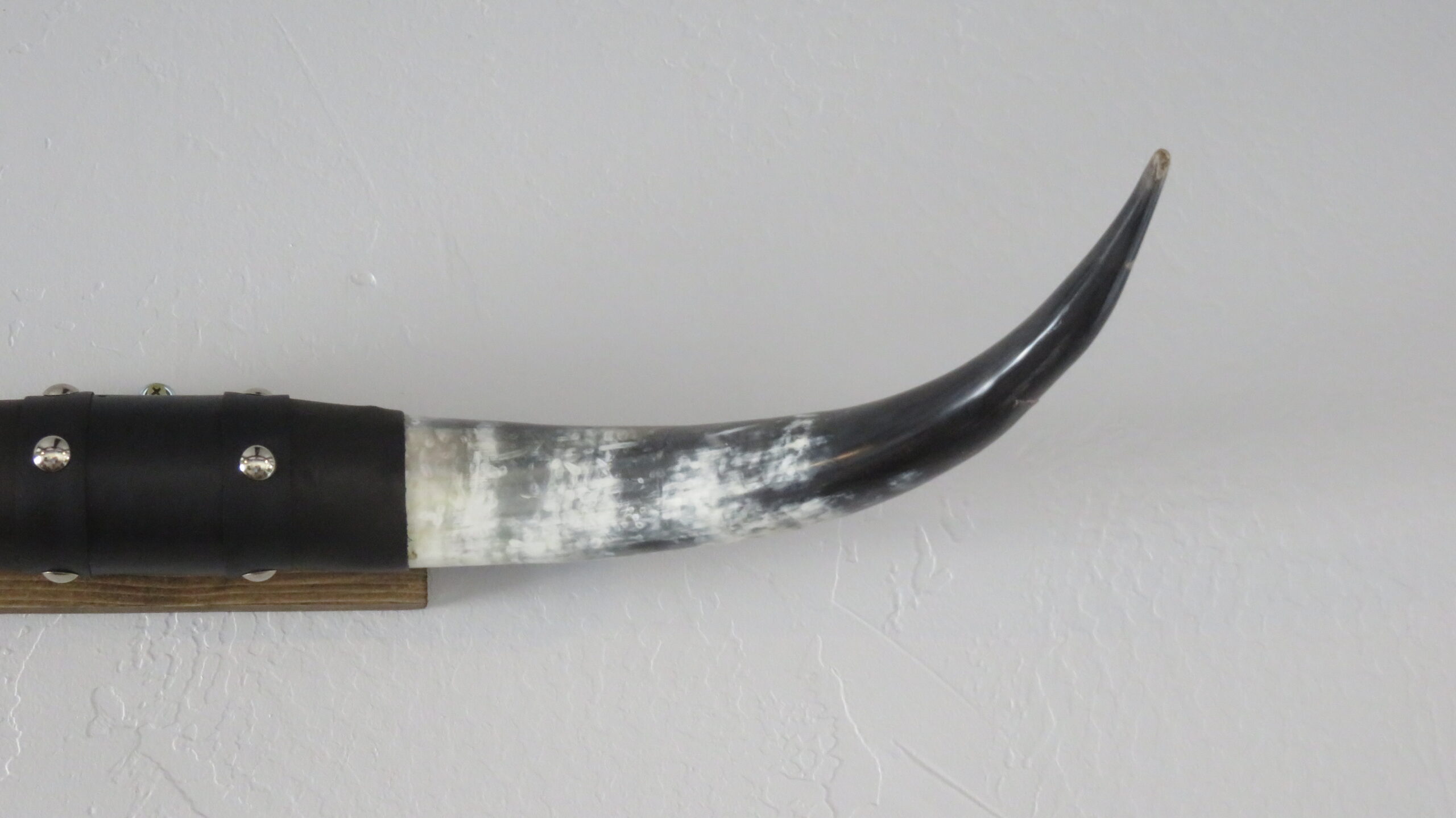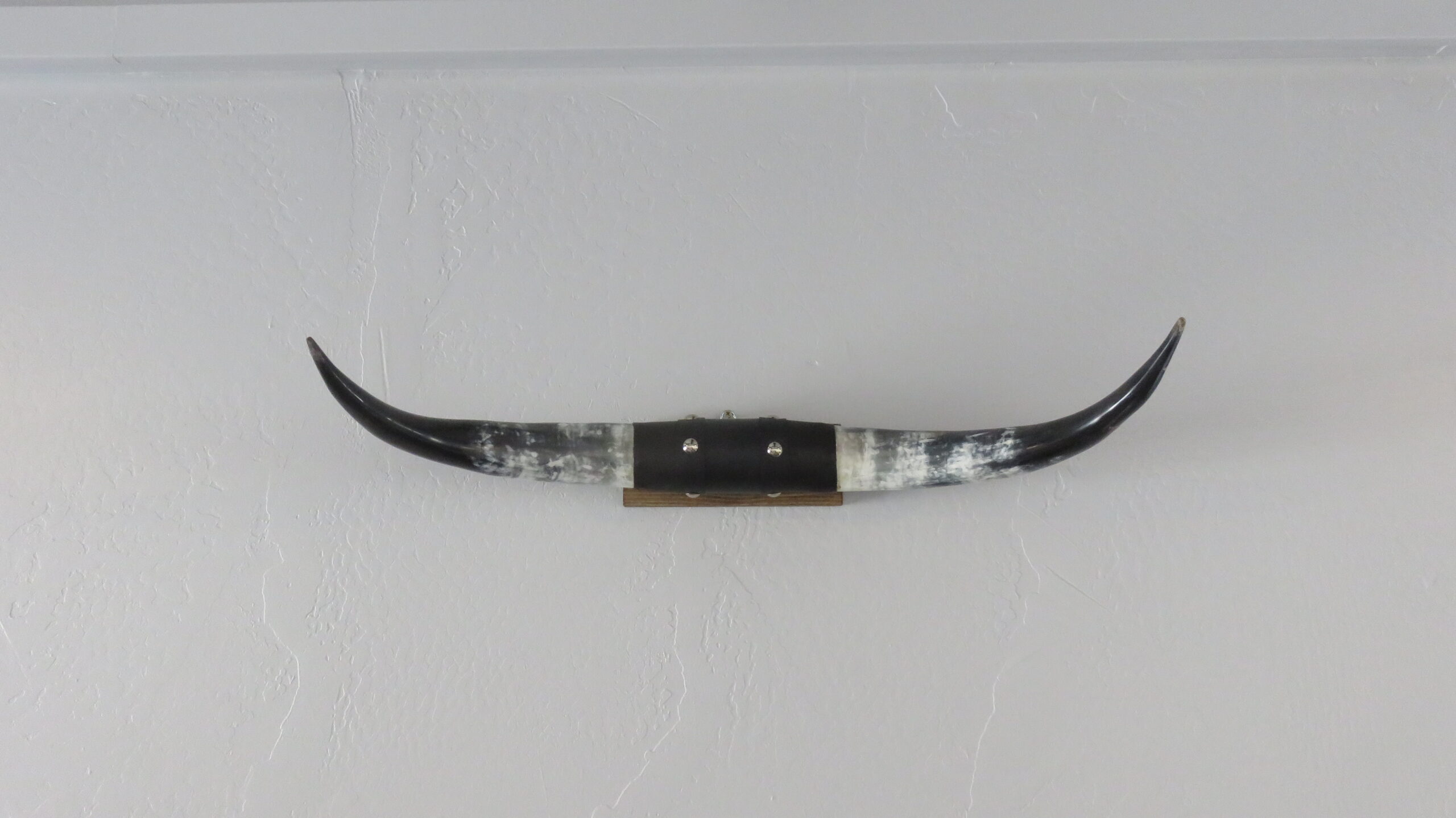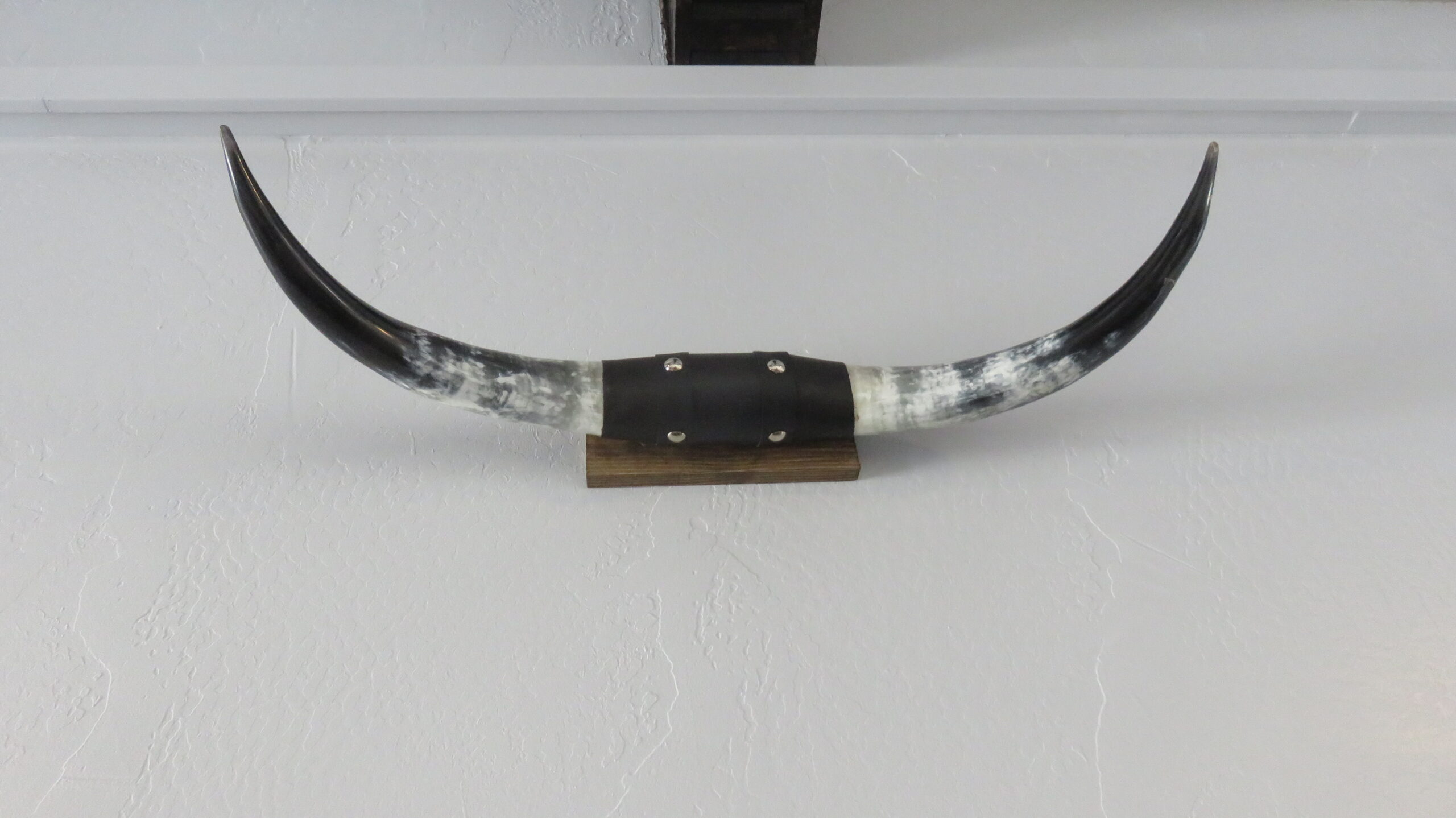 We have just picked up a great group of Texas Longhorns from Ft. Worth, TX and are proud to offer these to our clients. Each set is finished with genuine leather wraps and polished horns on a plaque with a hook for hanging. Great items for display in the lodge, cabin, mancave or office. They come in a variety of sizes and finishes. Some have studs/tacks that accent the leather and others do not. Leather can be black, brown or cowhide with the hair on. So take a moment to look at each variety. The one you see pictures of and purchase, is the one you will receive. These are NOT stock photos.