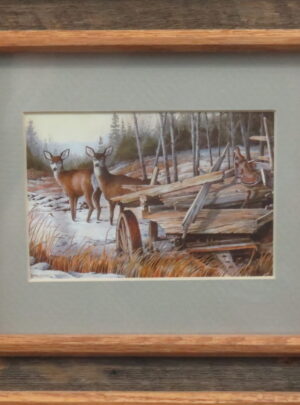 Overall item size is approximately 11 1/4″ wide and 14 1/4″ tall. Exposed image size is 8 1/2″ x 11 1/2″ (inches). Work was done in 1996 and is one of Bruce’s most popular works. Buy this art item for display in the lodge, cabin, home or office.